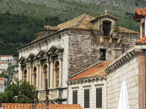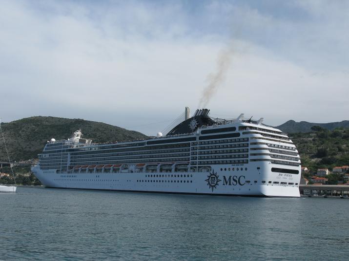 01-05 Een flatgebouw komt tegenover ons liggen in de haven van Dubrovnik. |