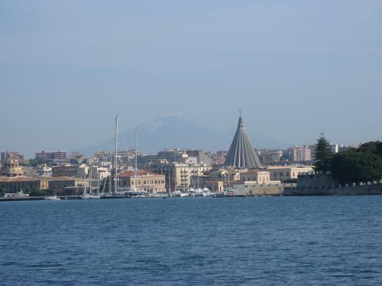 26-06 Aankomst Siracusa - Sicily. Op de achtergrond Mount Etna. |
