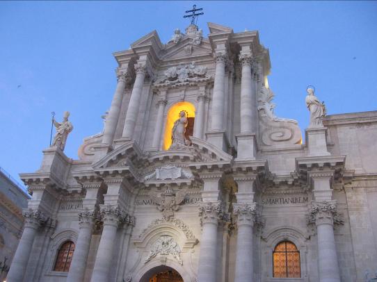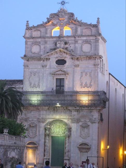 26-06 Siracusa De mooie kathedraal met in het midden Madonna del Pillar aan wie de kerk is gewijd. |